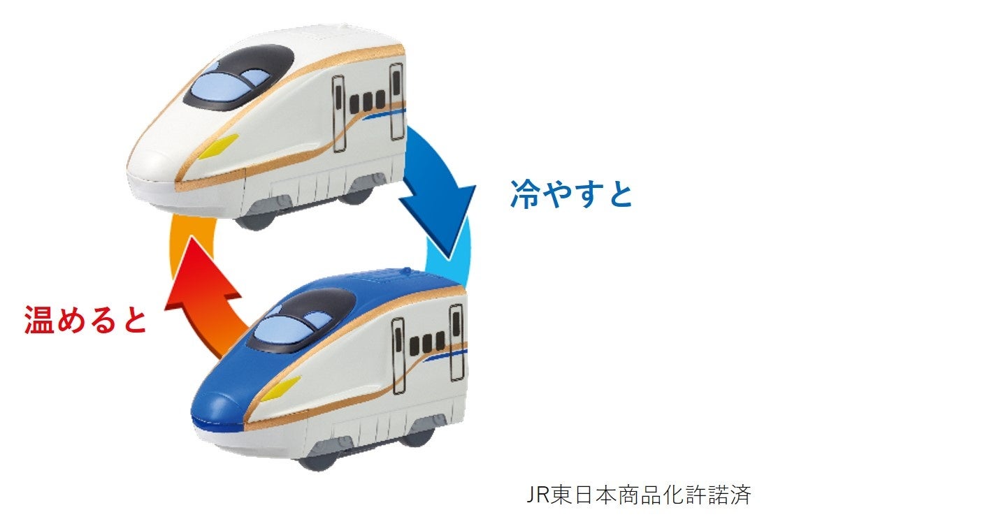 新幹線は氷水のトンネルを通ると色が変わり、お湯と氷水で何度でも楽しめます。