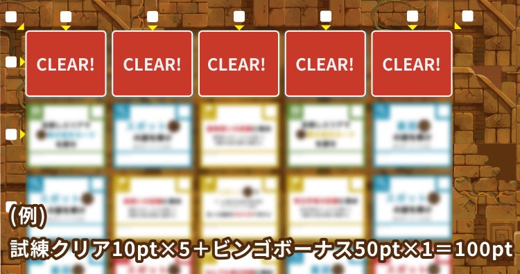 試練をクリアするとポイントを獲得し、制限時間内に最も多くのポイントを獲得したチームが勝利します。
