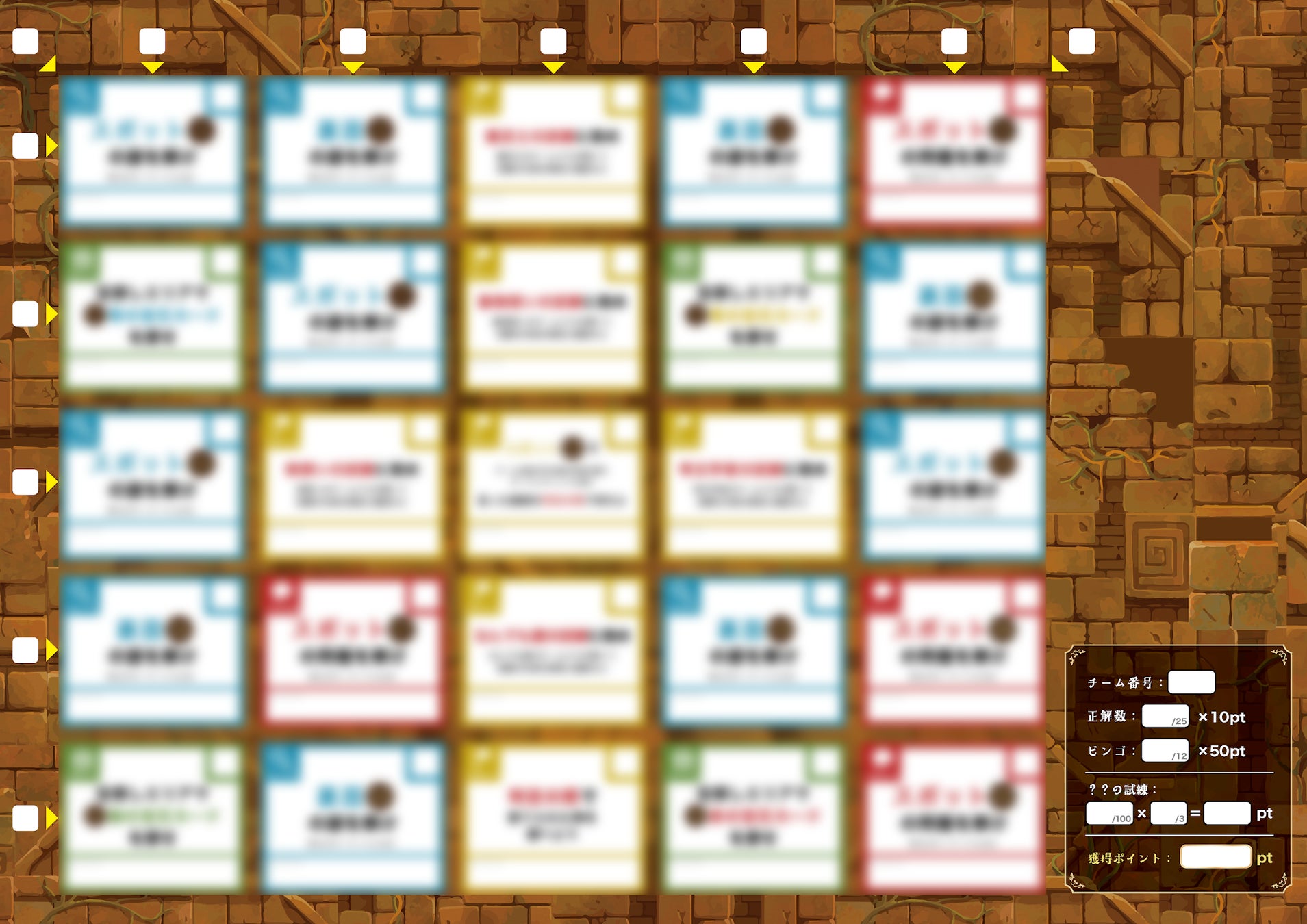 1チーム5~10名、最大500名まで参加可能なこのプログラムは、指定エリア内で25個の試練(謎解きや写真撮影など)に挑戦する内容です。