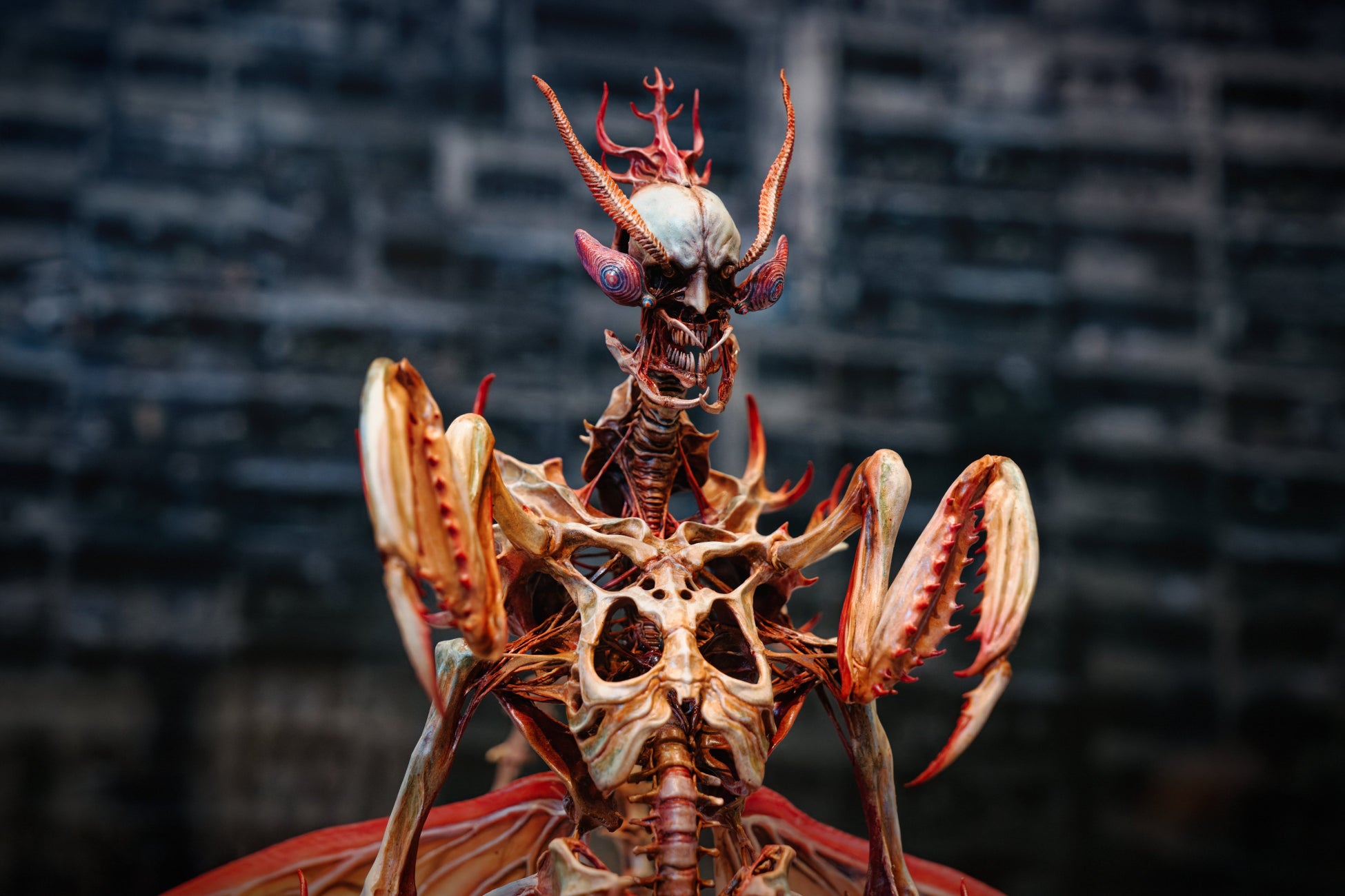 展示物としては、造形デザイナー米山啓介氏製作の「ニセハナマオウカマキリ野狗子」スタチューなども公開されます。