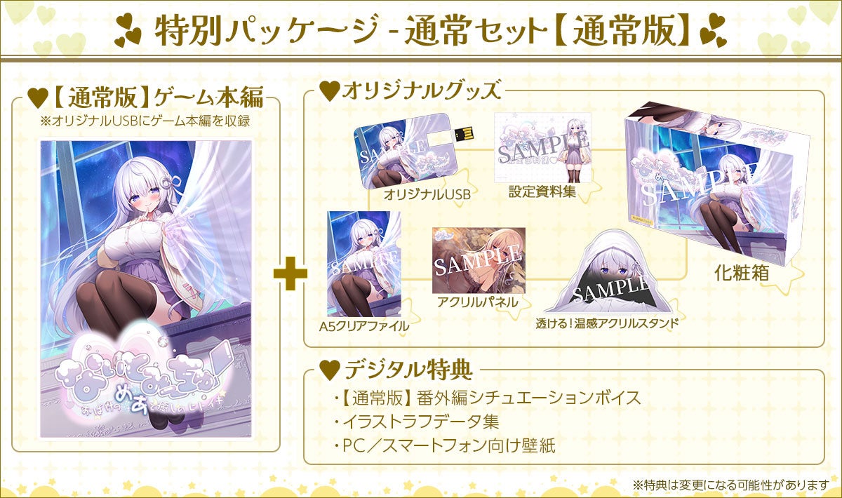 通常版と、よりドキドキするシーンが追加されたBOOTH限定の清楚版の2種類があり、価格は通常版が2,480円、特典セットが4,980円、特別パッケージが19,800円です。