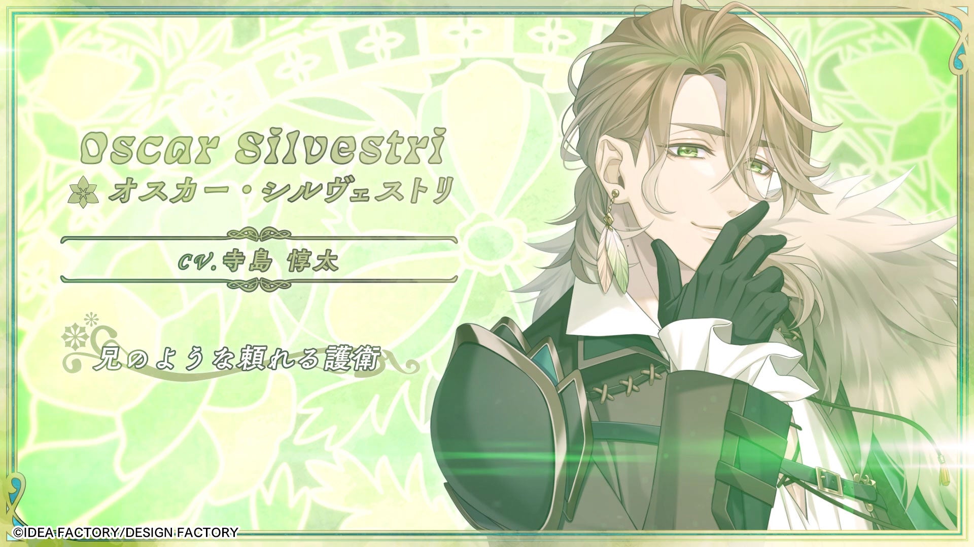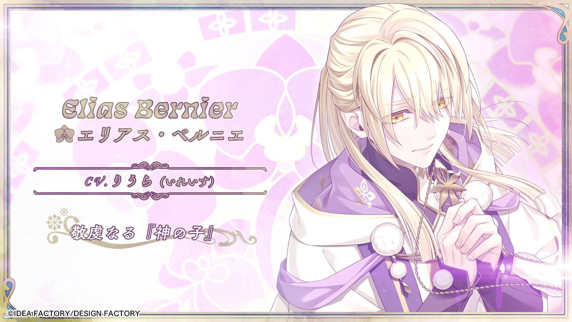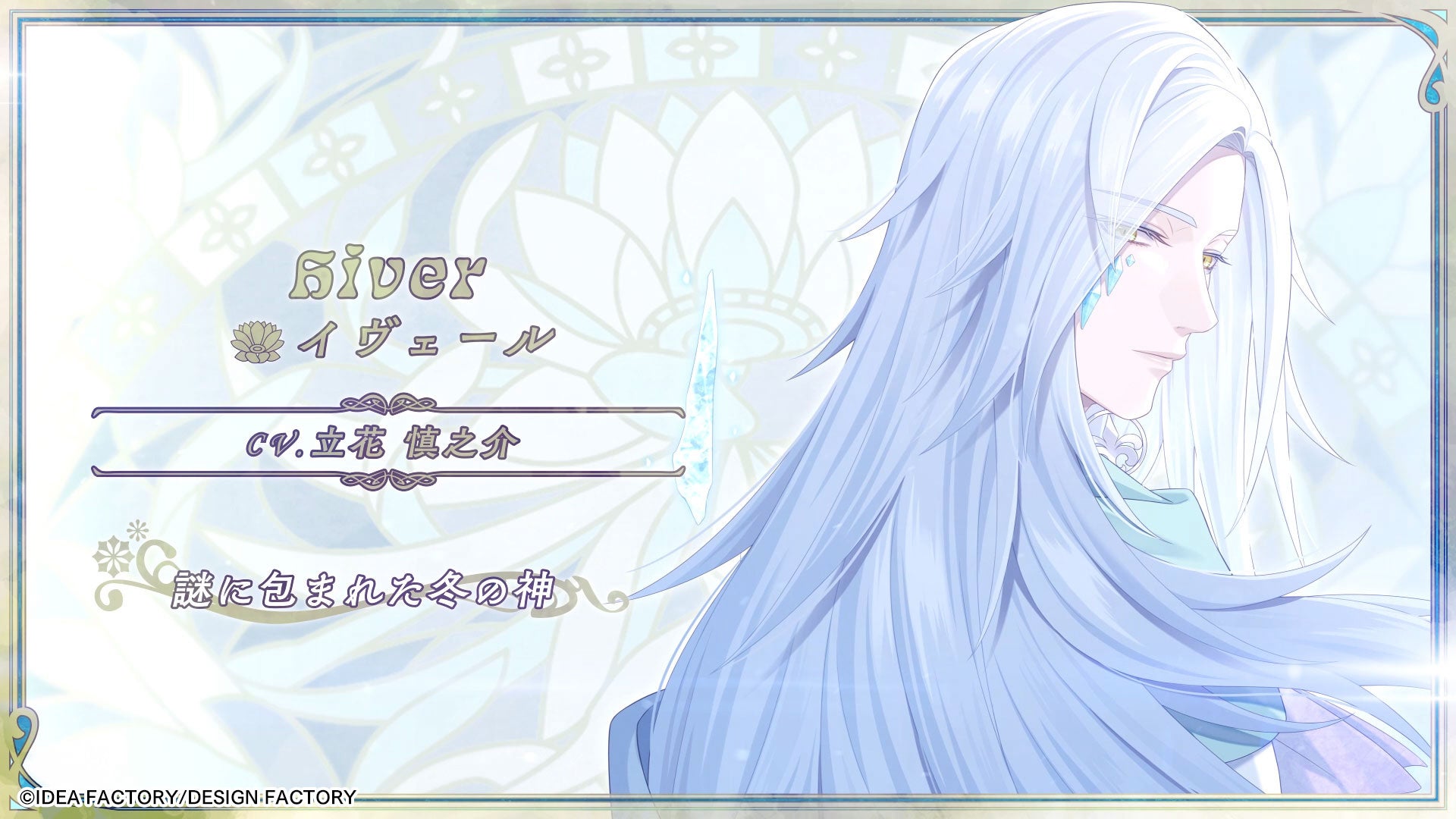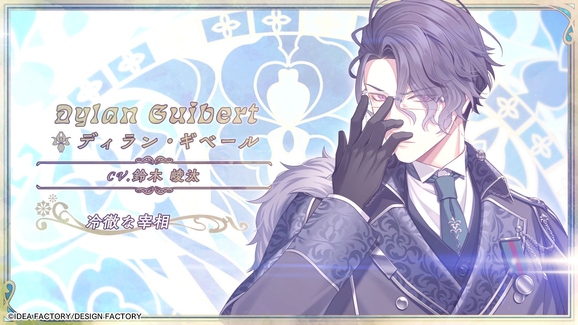 公開されたキャラクターPVでは、主人公レティシアと、皇帝レジス、神の子エリアス、宰相ディラン、護衛オスカー、冬の神イヴェールら攻略キャラクター5人の関係性が垣間見える。