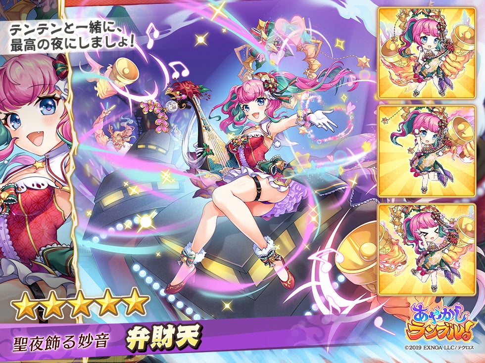 DMM GAMESの迎撃型爽快スキルバトルRPG『あやかしランブル!』で、クリスマス衣装の★5 弁財天と★5 恵比寿が期間限定で登場しました。