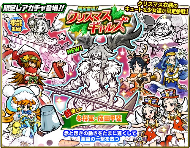 イベントでは、クリスマス限定レアガチャ「クリスマスギャルズ」が登場し、新超激レア「冬将軍・成田甲斐」が参戦します。