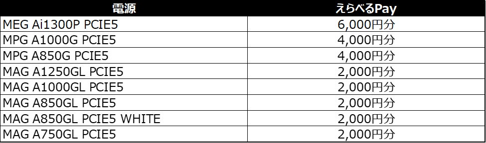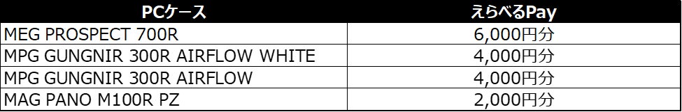 - MSIの対象製品購入で最大6,000円分のえらべるPayプレゼント