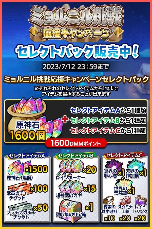 - ミョルニル挑戦応援キャンペーン、期間限定パック