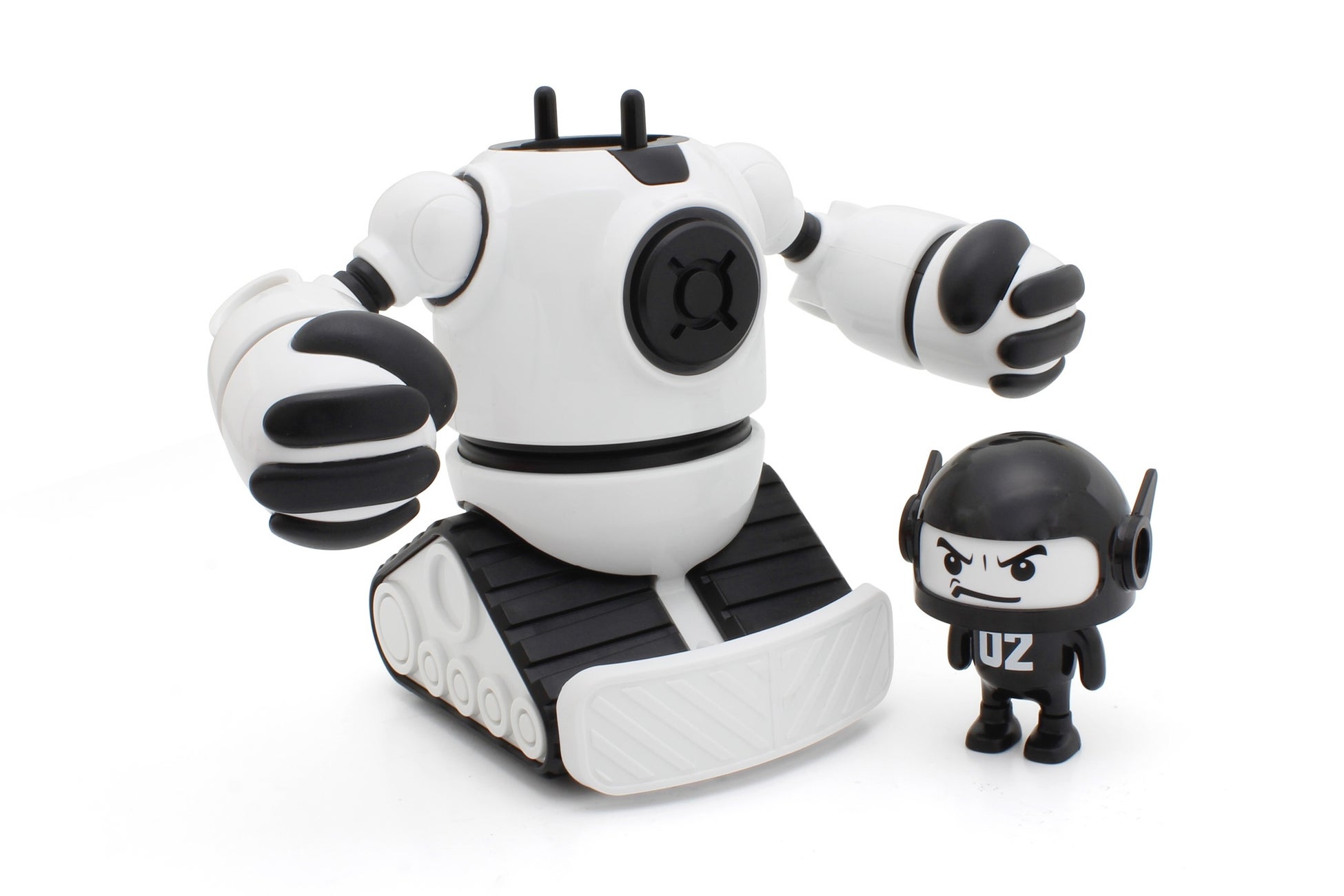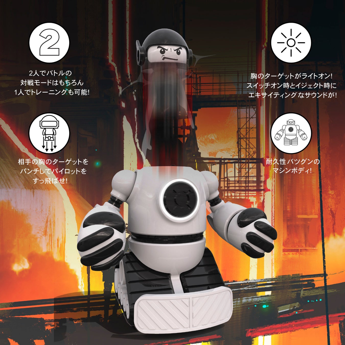 赤と白の耐久性バツグンのパンチマシンには2体のパイロットフィギュアが搭乗しており、勇敢な表情と共に戦いのプライドを感じさせます。