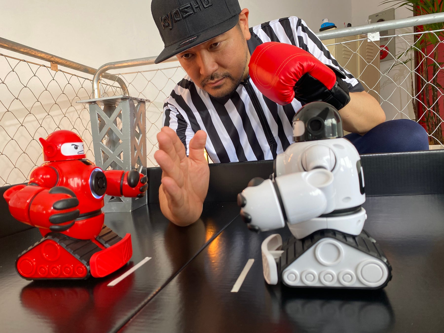 送信機にはパンチボタンがあり、パンチやフックの動作で前進します。