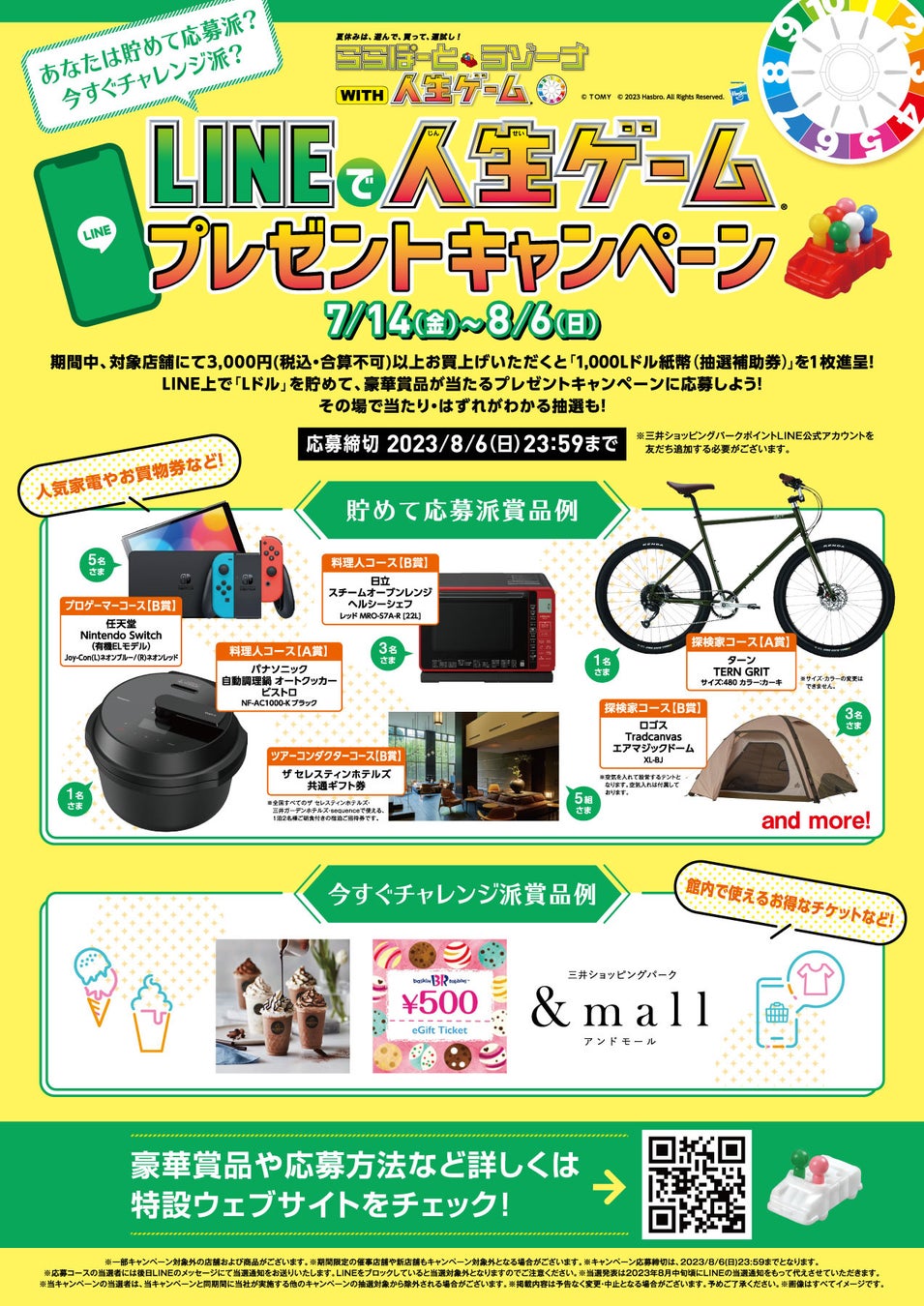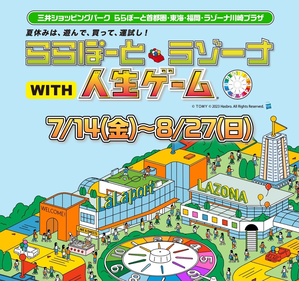 2023年7月14日から8月27日まで、三井不動産商業マネジメントが運営する三井ショッピングパークららぽーと14施設とラゾーナ川崎プラザで、人生ゲームとのタイアップイベントが開催されます。