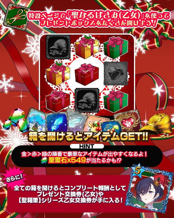 また、特設ページでは「聖なるはさみ」を使ってプレゼントボックスを開き、報酬アイテムを獲得できます。