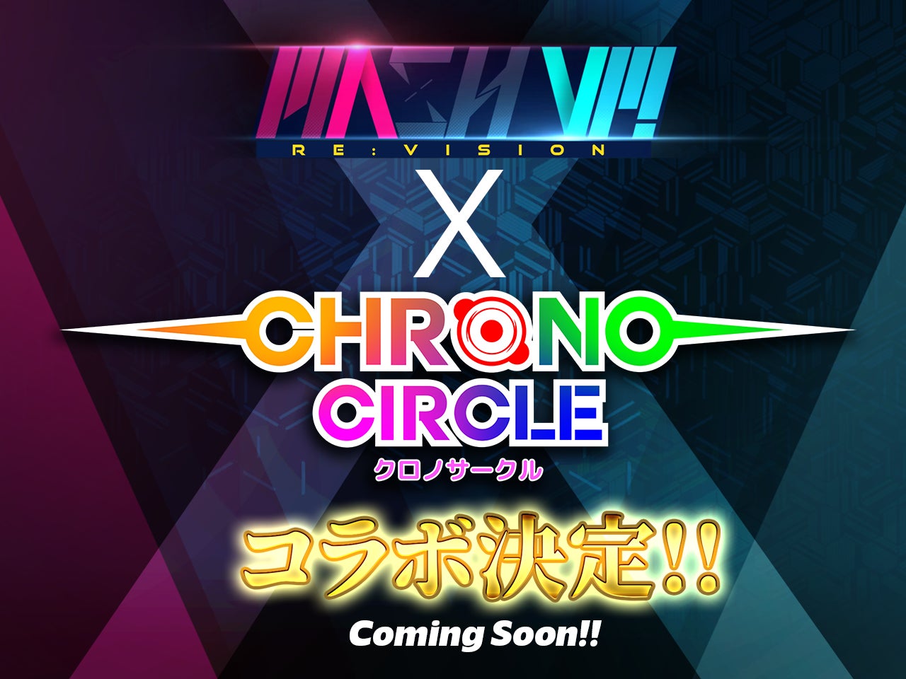 同時に、アーケード音楽ゲーム『クロノサークル』とのコラボが決定し、『クロノサークル』の人気楽曲が『MASH VP! Re:VISION』に追加されます。