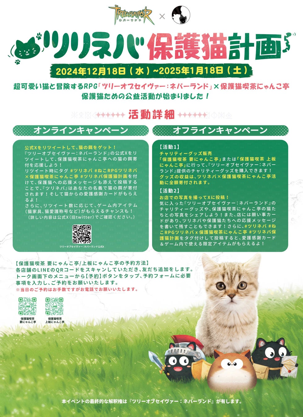 さらに、「ツリネバ保護猫計画」として、野良猫保護活動への参加を呼びかけ、限定称号やアイテムが配布されます。