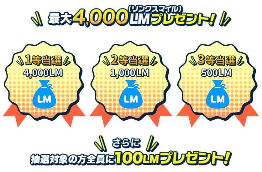 キャッシュバック利用者は抽選でさらに特典が貰え、既にLinksMateを利用中の方も抽選でリンクスマイルを獲得できます。