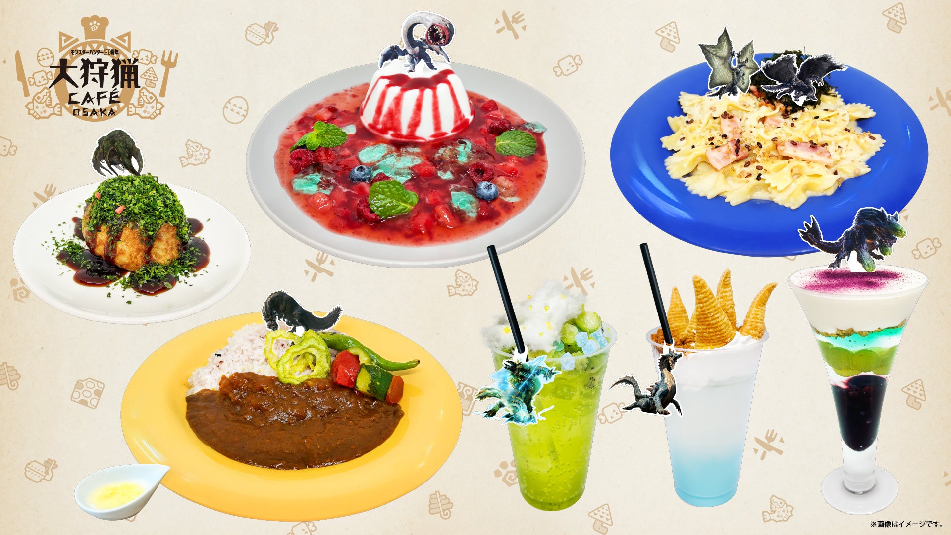 カフェでは、ヤマツカミのタコ焼きやイビルジョーのカレーなど、モンスターをイメージしたメニューが楽しめます。