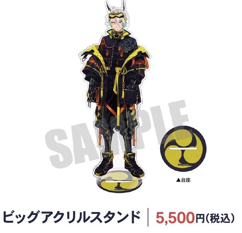 商品情報としては、アクリルスタンド、アクリルキーホルダー、ラバーキーホルダー、オーロラポーチ、フォンタブ、缶バッジ、ジョッキグラス、丼ぶり、ビッグアクリルスタンドが販売されます。
