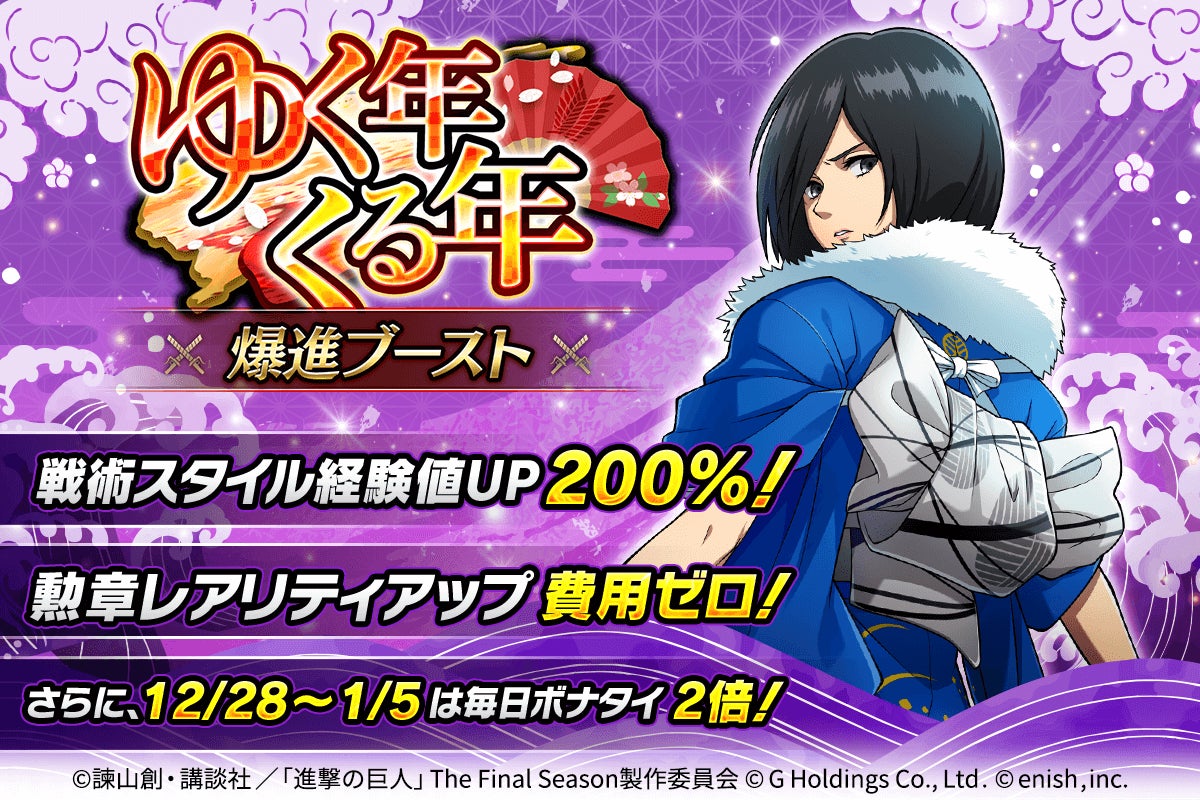 株式会社enishは、スマホゲーム『進撃の巨人Brave Order』で「ゆく年くる年キャンペーン」を2024年12月24日より開催します。