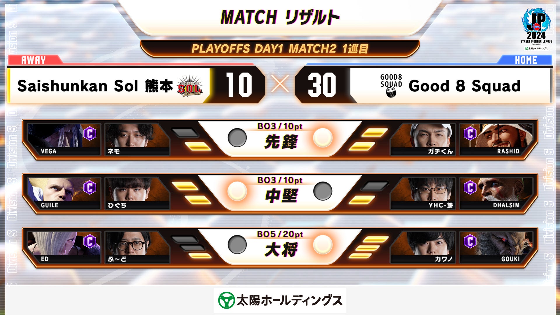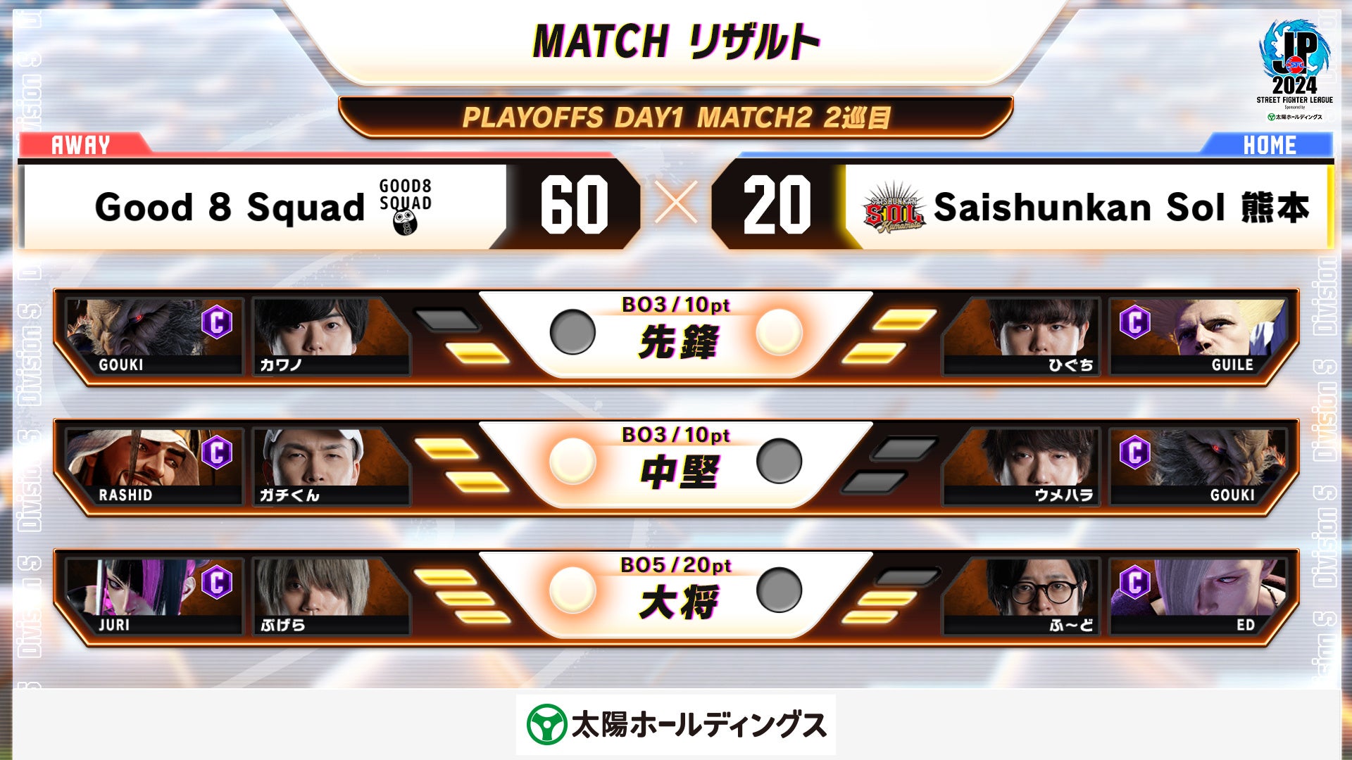 - 「ストリートファイターリーグ: Pro-JP 2024 プレイオフ」でGood 8 SquadとYogibo REJECTがグランドファイナル進出