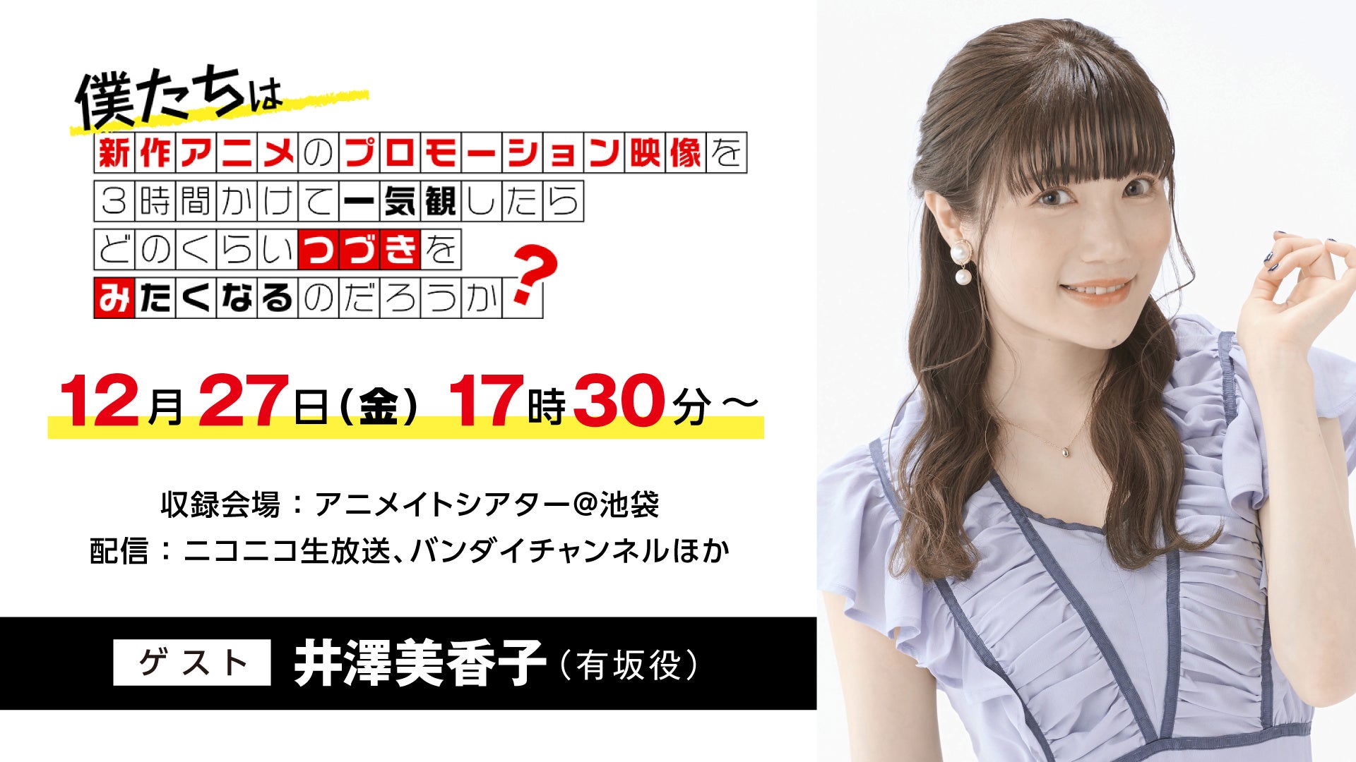 - 12月27日には、有坂役・井澤美香子さんがゲスト出演する番組「つづきみ」が配信予定
