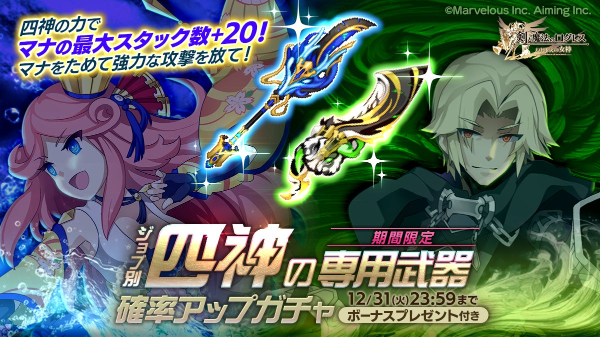 株式会社マーベラスは、スマホ向け本格オンラインRPG『剣と魔法のログレス いにしえの女神』において、2024年12月26日から複数のイベントとガチャを開催しています。