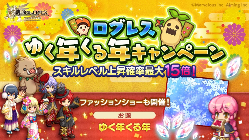 「ログレスゆく年くる年キャンペーン」では、ファッションショーや経験値・アイテムドロップ率アップなどの特典が用意されています。