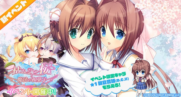 コラボイベント「枯れない桜と魔法の和菓子」では、イベント参加でコラボ限定キャラ「★1 朝倉音姫(D.C.Ⅱ)」を獲得できます。
