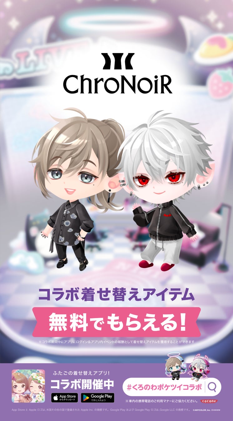 人気VTuberユニット『ChroNoiR』(叶、葛葉)とスマホアプリ『ポケコロツイン』のコラボレーションを記念し、JR池袋駅中央通路にて大型駅広告が展開されます。