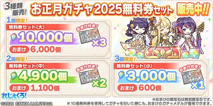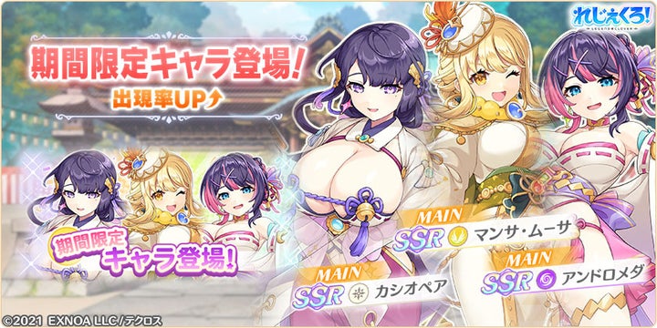 アンドロメダ、マンサ・ムーサ、カシオペアの3キャラクターが、お正月衣装で登場する期間限定ガチャが実施されます。