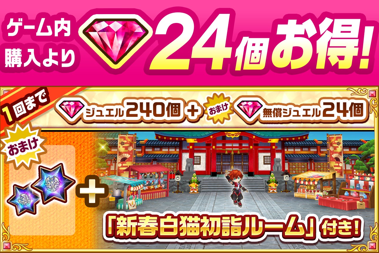 さらに、新イベントキャラ保証付きのプレミアムジュエルパックや、正月仕様のロビーが手に入るジュエルパックも販売。