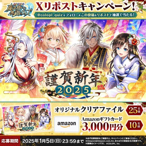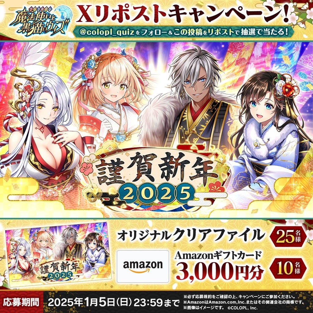 コロプラは、スマートフォン向けクイズRPG『クイズRPG 魔法使いと黒猫のウィズ』において、2025年1月1日より新イベント「謹賀新年 2025」を開催します。
