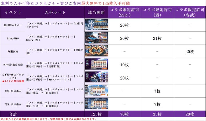• 125枚のコラボガチャチケット、限定SSR+キャラクター4体無料獲得など、豪華報酬多数