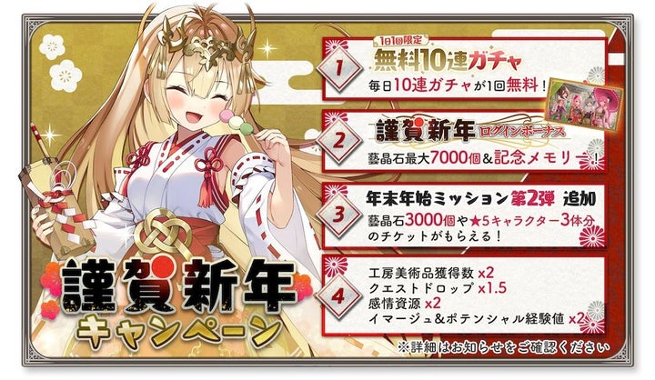 DMM GAMESの『ガールズクリエイション -少女藝術綺譚-』で、2025年1月1日より「謹賀新年キャンペーン」が開催されます。