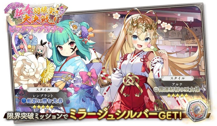 新登場の正月衣装レンブラントとアルテの★5スタイルがピックアップされたガチャも実施されます。