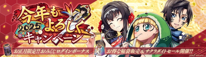 キャンペーン内容は、「今年もよろしくキャンペーン」と題し、育成素材獲得ミッションやログインボーナス、スタミナ半減など盛りだくさん。