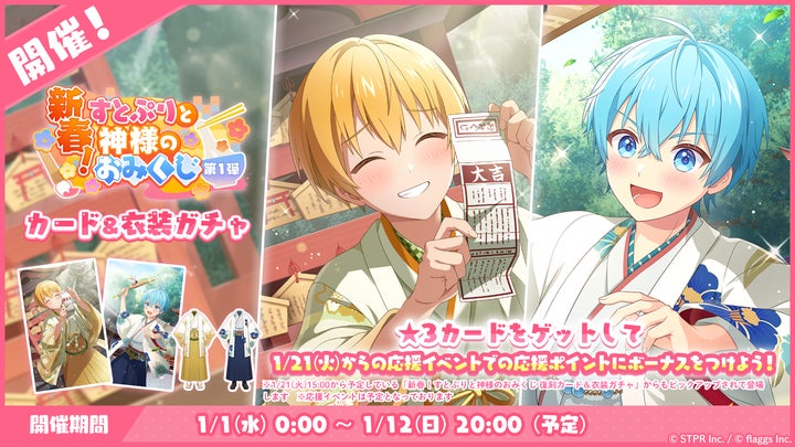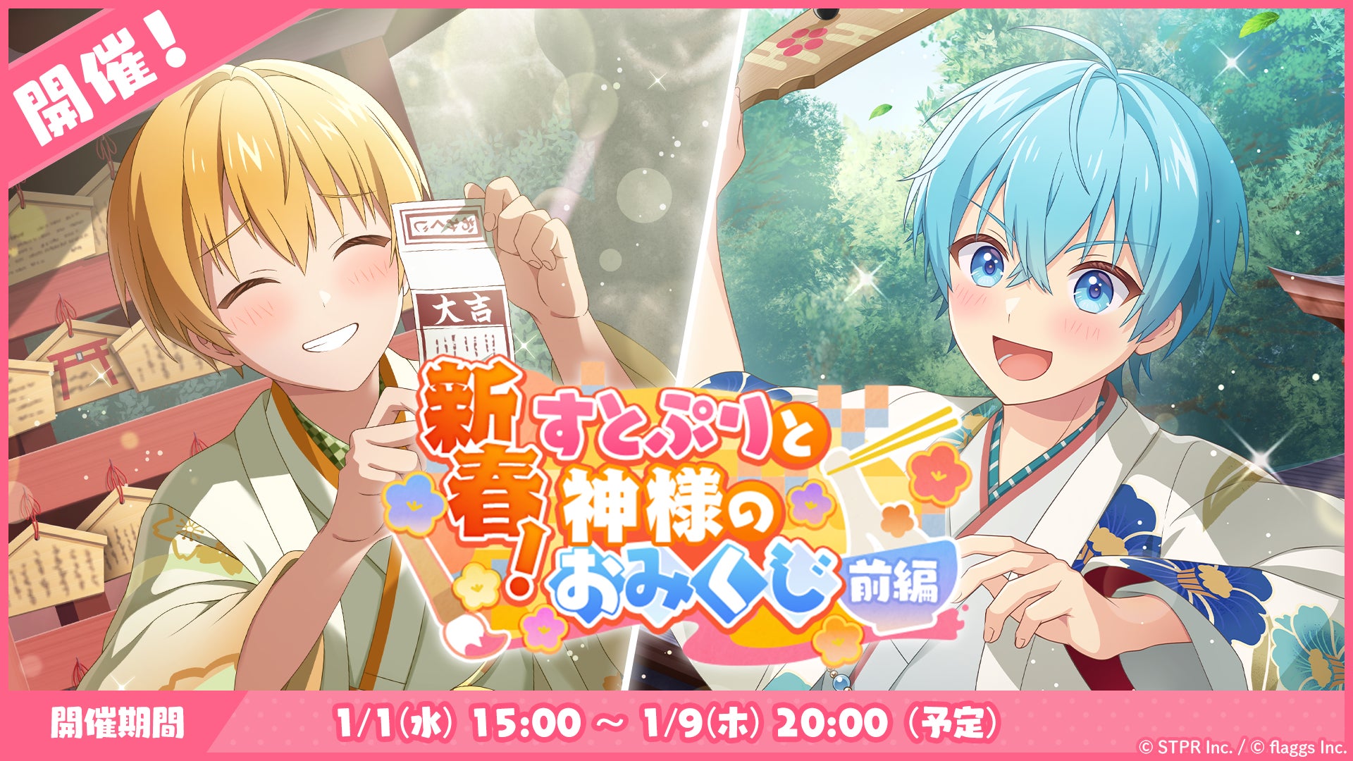 2.5次元アイドルグループ『すとぷり』の公式ゲームアプリ『すとぷりWith!!(すとうぃず)』において、1月1日より新春イベント「新春!すとぷりと神様のおみくじ 前編」が開催されました。