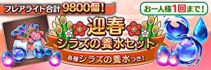 フレアライト10,000個プレゼントを始め、新春特別イベント『新春万福! エクストリーム餅つき大会』、有償限定召喚、ログインボーナス、アイテムドロップ量増加キャンペーンなど、様々なイベントが実施されています。