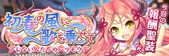 また、同時に冒険イベント『初春の風に歌を乗せて ブレない人たちのハツモウデ』も開催され、イベント限定聖装や家具を獲得できます。