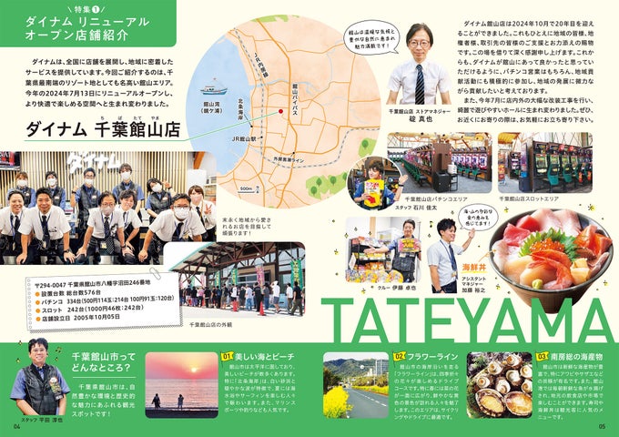 vol.24では、地域密着型の店舗特集や、ダイナム所属のプロスカッシュプレイヤー机龍之介選手のインタビュー、直近のニュースや決算情報などが掲載されています。