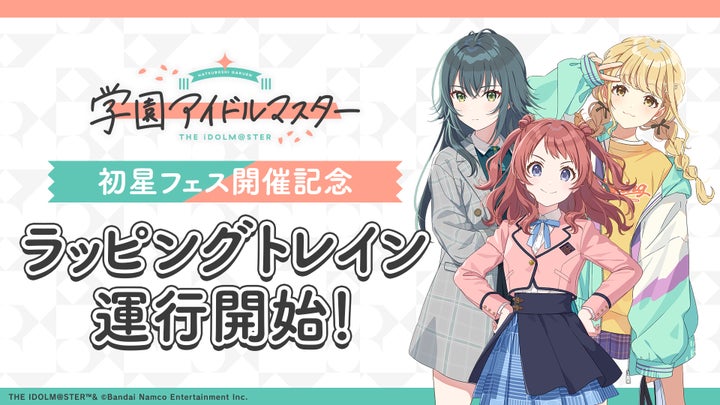 株式会社バンダイナムコエンターテインメントは、スマホゲーム『学園アイドルマスター』の初星フェス開催を記念して、花海咲季、月村手毬、藤田ことねをデザインしたラッピングトレインを中央快速線、京浜東北線、山手線で2025年1月末まで運行します。