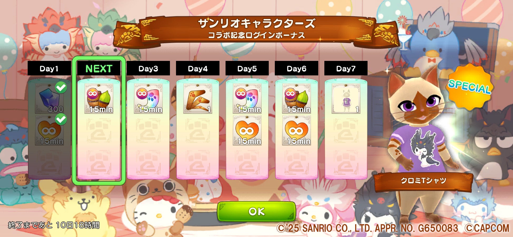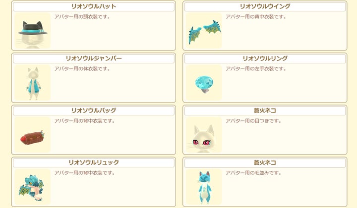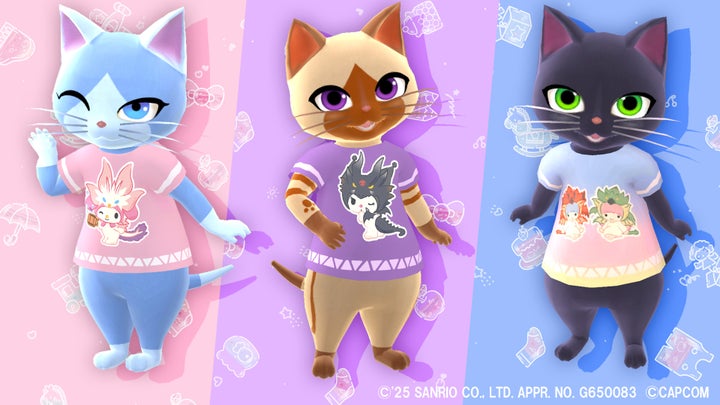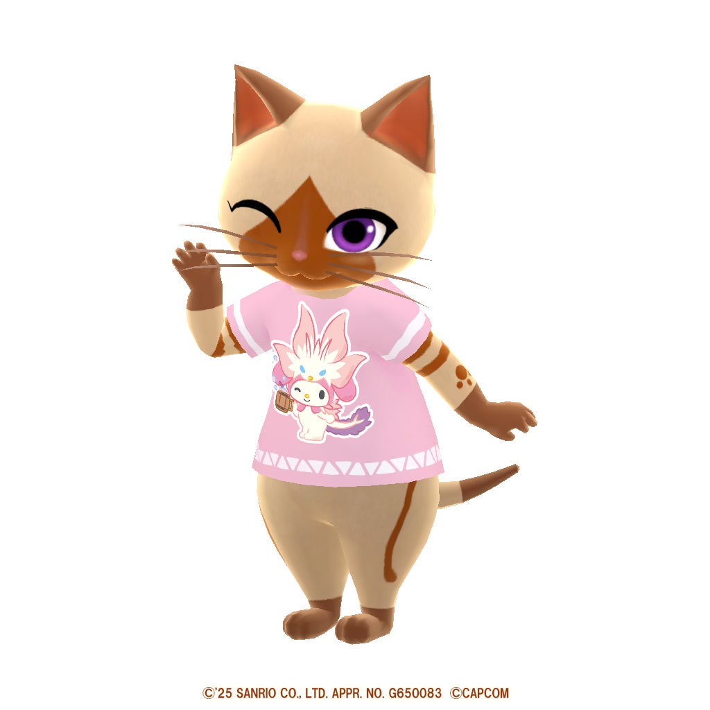 2025年1月6日から3週連続で、サンリオキャラクター(クロミ、マイメロディ、リトルツインスターズ)とモンスターハンターのモンスターがデザインされたアイルー用Tシャツがログインボーナスとして配布されます。
