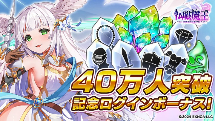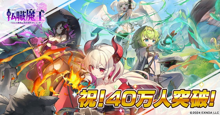 DMM GAMESのブラウザゲーム『転職魔王~リストラ勇者のお仕置きセレナーデ~』がユーザー数40万人を突破し、これを記念してログインボーナスと新キャラクター追加、期間限定イベントが実施されます。