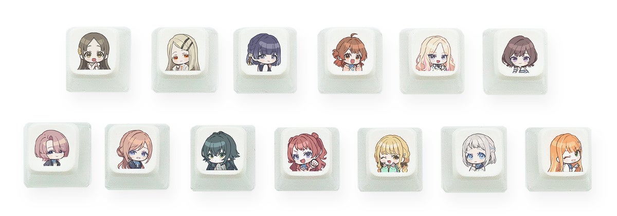 コラボグッズは、VARMILO協力のもと開発された「学園アイドルマスター」をイメージした本格メカニカルキーボード(7種類の軸から選択可能)、12名のアイドルのデフォルメイラストがデザインされたキーキャップセット、葛城リーリヤの描き下ろしイラストを使用した特大マウスパッド、LEDスタンド付きアクリルブロック、葛城リーリヤの描き下ろしイラストが使用された特大ブランケット、noka先生描き起こしのデフォルメイラストがデザインされたマジックタオルの6種類です。