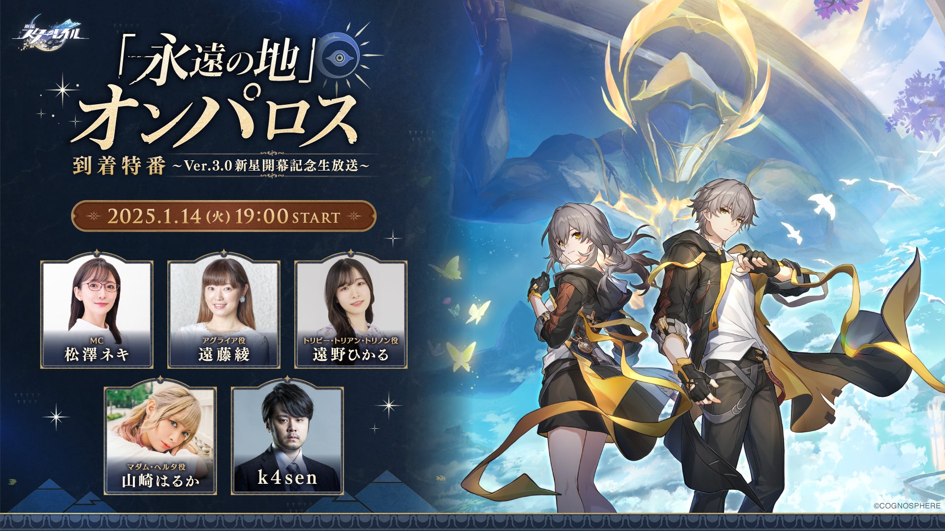- 1月14日19時より、『崩壊:スターレイル』Ver.3.0新星開幕記念生放送を配信