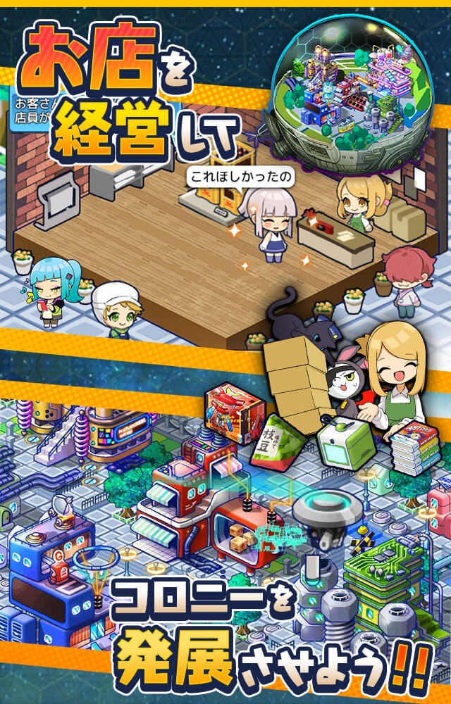 プレイヤーは宇宙コロニーの社長となり、ショップ経営や宇宙冒険を通じてコロニーを発展させる。