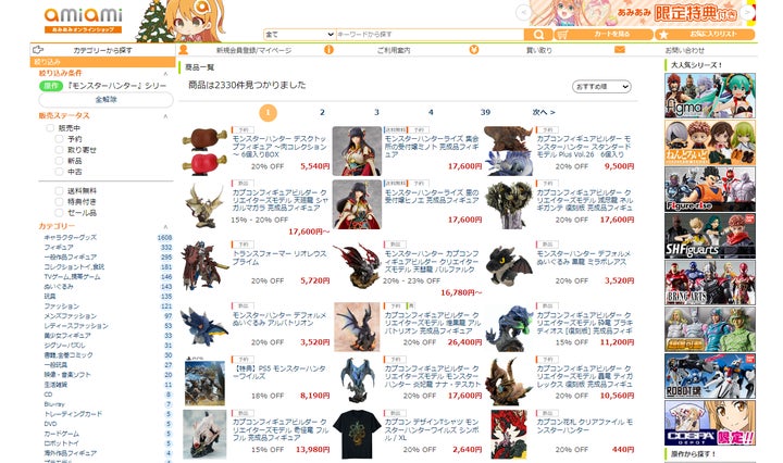 ホビー通販サイト『あみあみ』にて、『モンスターハンター』シリーズに登場する様々な種類の「肉」をモチーフにしたデスクトップフィギュア「モンスターハンター デスクトップフィギュア ~肉コレクション~ 6個入りBOX」の予約受付が開始されました。