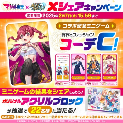 コロプラは、スマートフォン向けクイズRPG『クイズRPG 魔法使いと黒猫のウィズ』において、TVアニメ『株式会社マジルミエ』とのコラボイベントを2025年1月10日より開催しています。