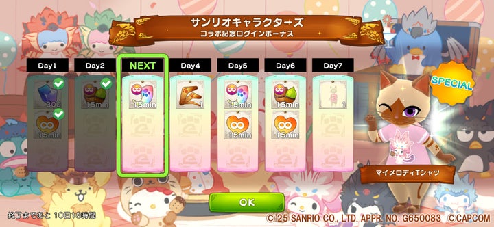 - サンリオキャラクターズコラボ記念ログインボーナスを3週連続配布(マイメロディ、リトルツインスターズなど)