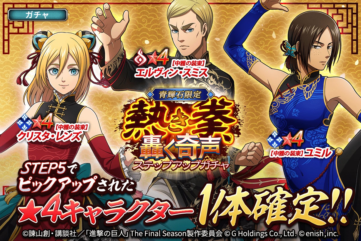 ・新登場の【中雅の装束】クリスタ・レンズ、【中雅の装束】ユミル、【中雅の装束】エルヴィン・スミス