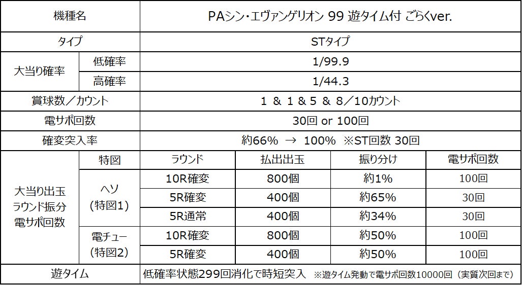 - 「PAシン・エヴァンゲリオン 99 遊タイム付 ごらくver.」がダイナムグループ限定で導入される。