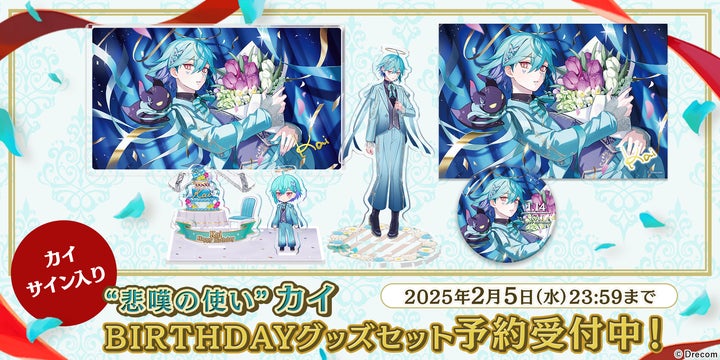 さらに、カイの誕生日を記念した新作グッズ(アクリルパネル、アクリルスタンド、ミニキャラアクリルジオラマ、缶バッジ、ポストカード)の予約受付も開始しています。