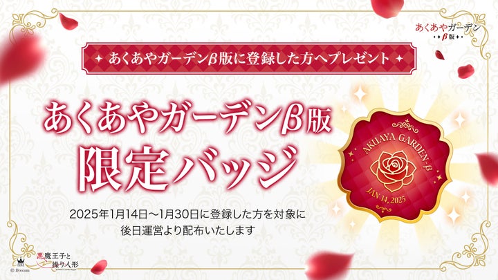 株式会社ドリコムは、ダークファンタジーADV『悪魔王子と操り人形(あくあや)』の公式Webファンコミュニティ「あくあやガーデンβ版」を2025年1月14日にオープンしました。